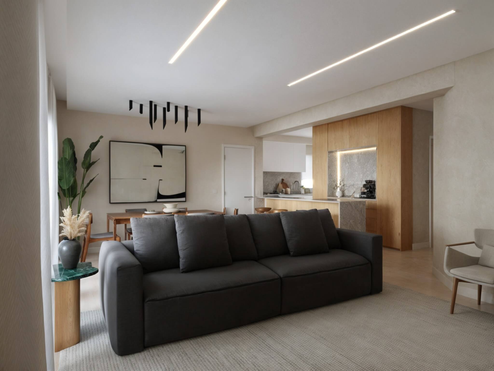 The plants were also a big element in this project. We brought nature inside and placed them all around the communal areas and in the living room, we added a vertical garden. Also, the art chosen was to remind its guests of the power of nature.