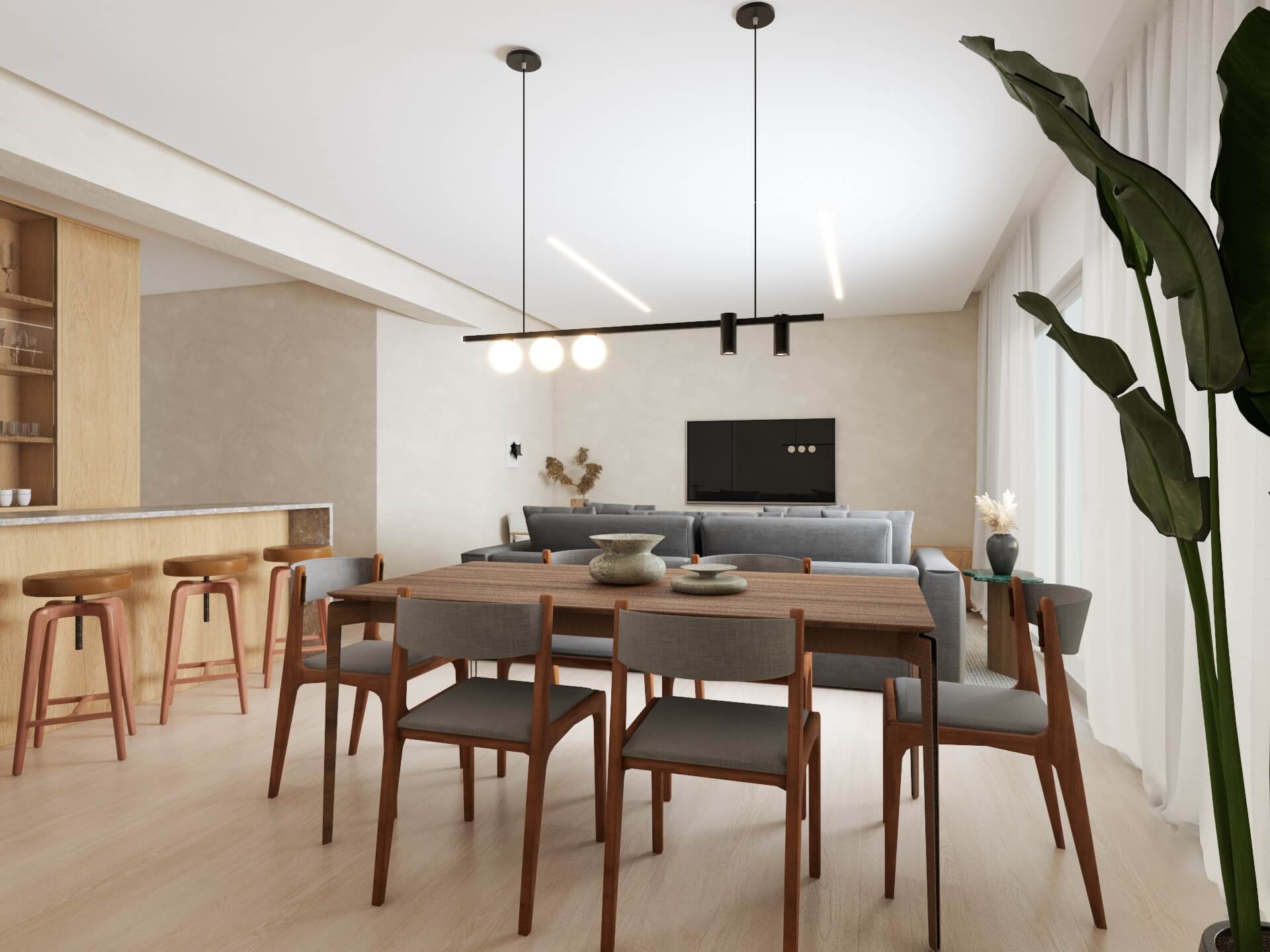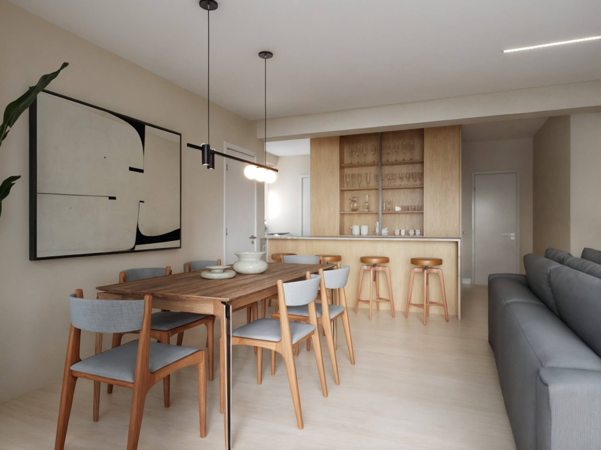 The entire concept of this apartment was to “bring in nature”. All the elements were meant to bring the “outside, inside.” The palette was wood and green. We integrated it all around the apartment to create a cohesive design.