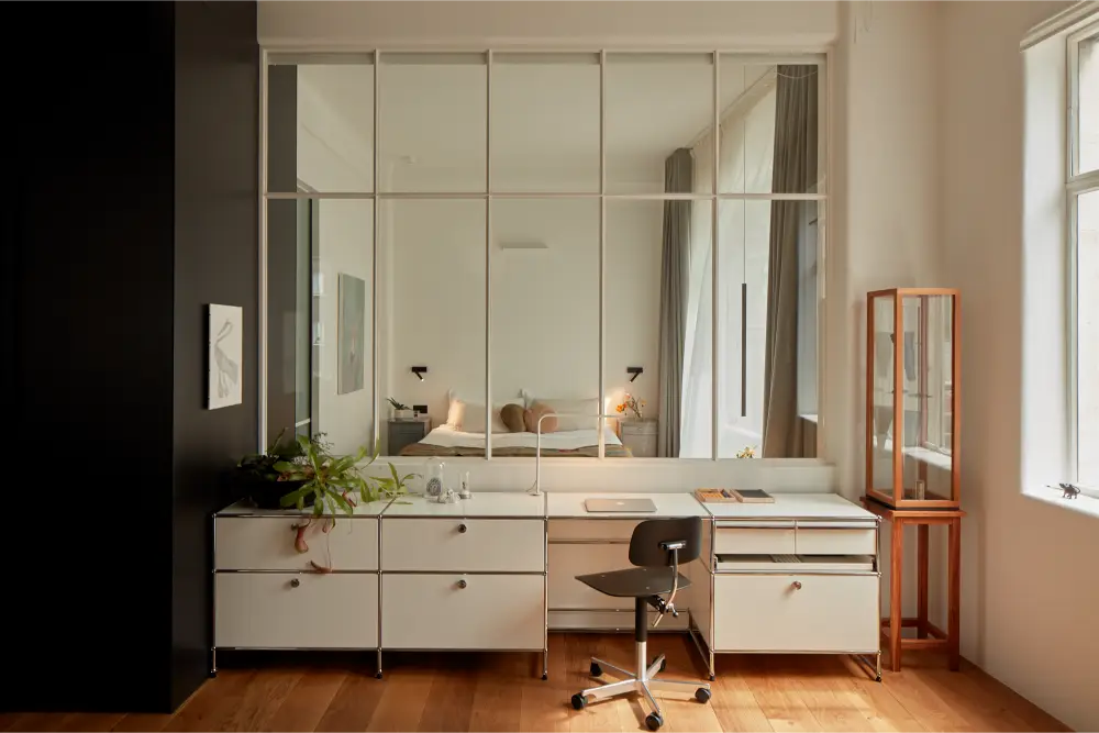 If your bedroom doubles as your workspace, there’s no reason it can’t be stylish and functional. A sleek desk that complements your bedroom furniture can create a seamless look. Whether you need this setup due to limited space or because you and your partner both work from home, prioritize comfort and organization. Add a small lamp, a pinboard, or even a decorative tray for your essentials to make it feel like a cohesive part of your bedroom design.