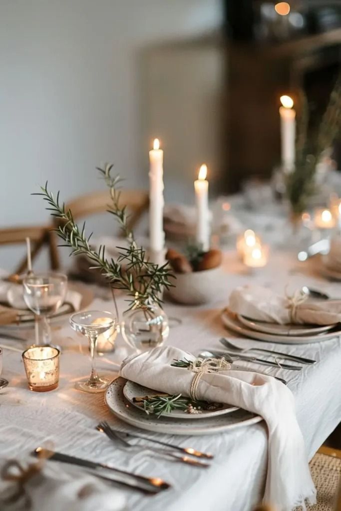 Let’s talk about the dining table—it’s where all the holiday magic happens, from heartfelt conversations to sharing your favorite dishes. The great thing about a minimalist holiday table is that it can feel elegant and festive without being over the top. It’s all about keeping things clean, natural, and effortlessly chic. Think of it as setting the stage for your guests to feel cozy and welcome without distracting from the real star: the food (and maybe you, the amazing host!).