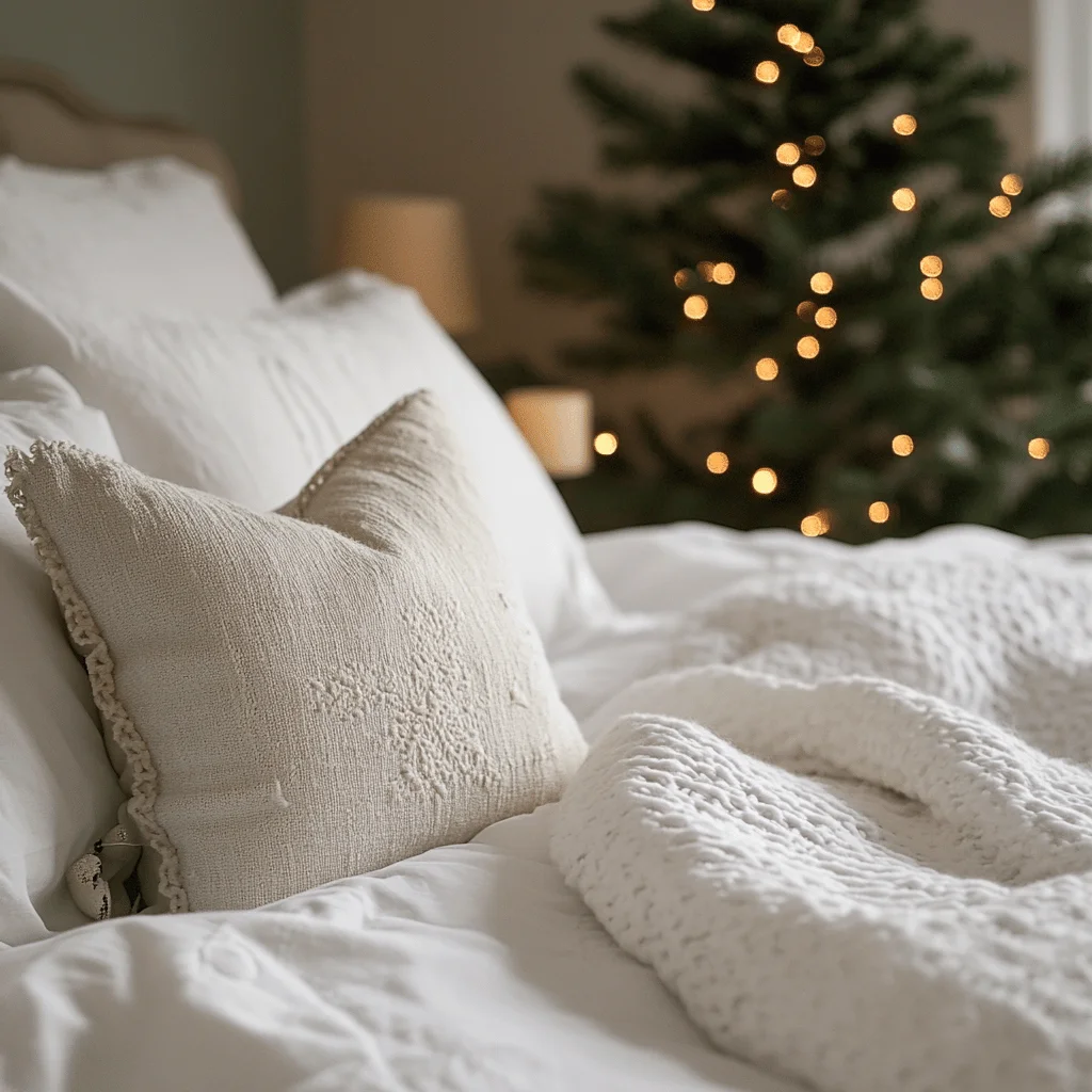 - Accent Pillows: Swap out your usual pillows for ones with understated holiday-inspired designs. Think abstract snowflakes, geometric winter patterns, or subtle embroidery that adds charm without being over-the-top. Go for a mix of textures like soft velvet, linen, or boucle to create visual interest.