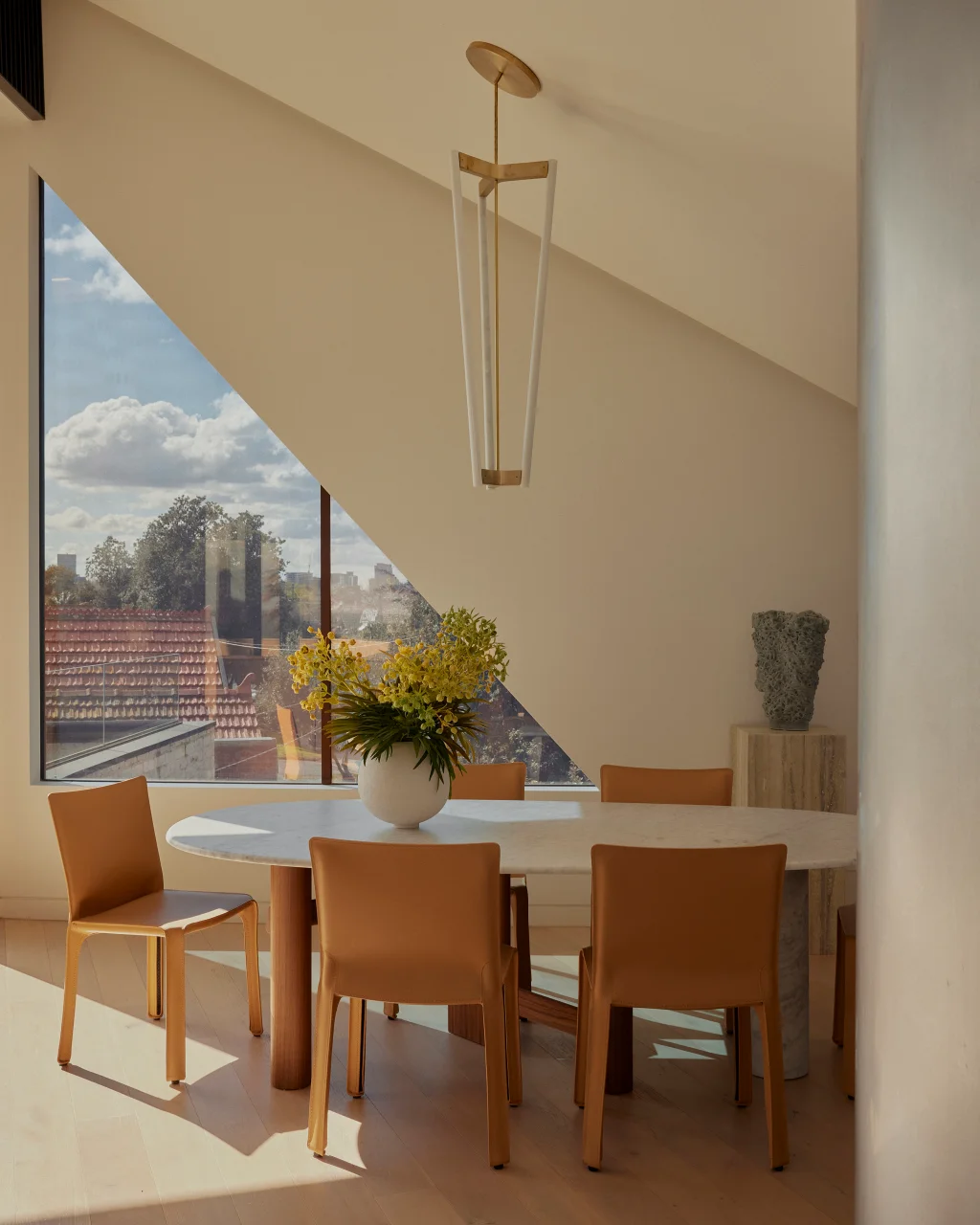 The dining area flows right off the kitchen, basking in the northern sun. It’s open and airy, but with one of those clever little details that makes you smile: a hidden bar, neatly tucked behind the wall. It’s the kind of thoughtful design that makes entertaining effortless without shouting for attention.