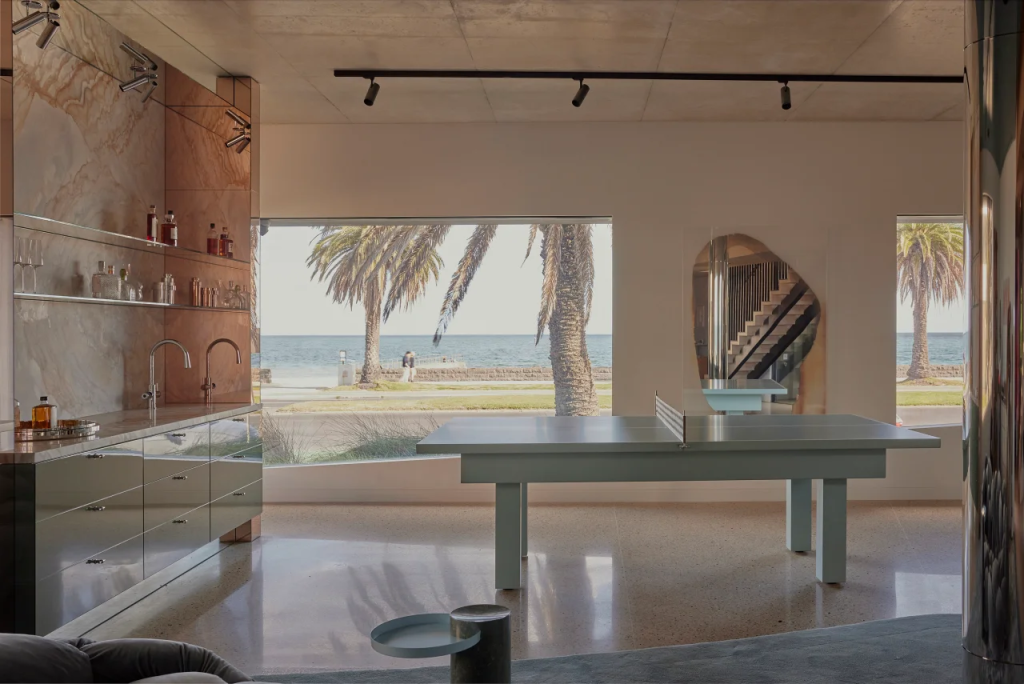 But what makes this home so special is its fearless approach. It’s proof that modern coastal home design doesn’t have to mean white-on-white minimalism or boring beach clichés. It can be bold. It can be sculptural. It can reflect the personalities of the people who live there.
